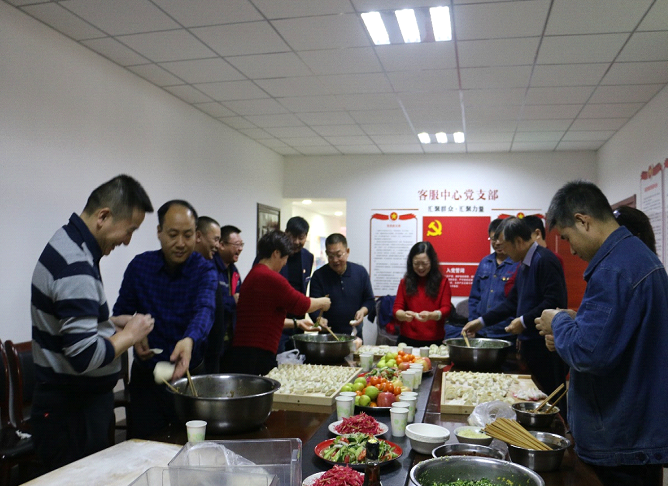 中午,一場特殊的團(tuán)圓飯?jiān)诳头行臄[開,集團(tuán)公司領(lǐng)導(dǎo)與干部職工共包餃子迎新春,整個辦公室沉浸在歡樂祥和、喜氣洋洋的氣氛中。這些餃子包含著親切的問候和新春的祝福,歡聲笑語中讓員工感受到了大家庭的別樣溫情,作為一份別樣的禮物送給新年期間堅(jiān)守在工作崗位上的廣大一線干部職工,體現(xiàn)了濃濃的魚水情。