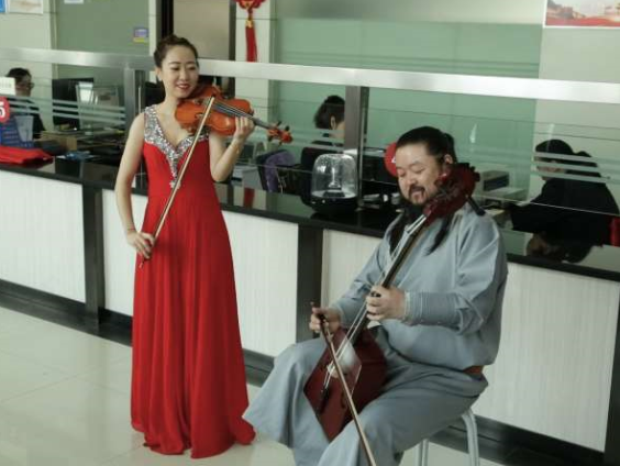 活動(dòng)現(xiàn)場,幾名年輕的職工深情唱起《我和我的祖國》,悠揚(yáng)的小提琴、馬頭琴聲也隨之緩緩響起,數(shù)名少數(shù)民族伴隨歌聲翩翩起舞,大家揮舞著手中鮮紅的國旗,跟著清唱,把活動(dòng)推向高潮。不少繳納水費(fèi)的用戶被現(xiàn)場的氣氛所感染,紛紛拿出手機(jī)拍照、錄影,跟隨音樂共同唱響《我和我的祖國》,揮動(dòng)的國旗將收費(fèi)大廳渲染成了激情澎湃的紅色海洋。