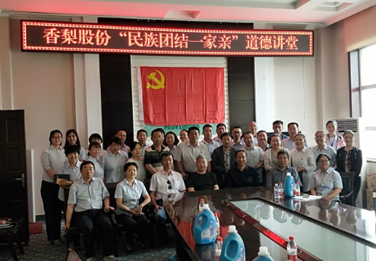 為深入開展第37個(gè)民族團(tuán)結(jié)教育月活動(dòng),不斷鞏固和發(fā)展平等、團(tuán)結(jié)、互助、和諧的社會(huì)主義民族關(guān)系,加強(qiáng)愛國(guó)主義教育和民族團(tuán)結(jié)教育,進(jìn)一步營(yíng)造各民族共同團(tuán)結(jié)友愛,共同學(xué)習(xí)進(jìn)步的良好氛圍,緊緊圍繞“各民族平等、團(tuán)結(jié)、互助、和諧”這一主題,香梨股份于2019年5月24日聯(lián)合圣果社區(qū)開展了民族團(tuán)結(jié)一家親道德講堂活動(dòng),本次活動(dòng)共43人參加。