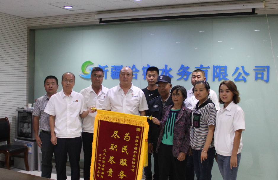 “衷心感謝哈密水務(wù)公司的大力支持,高效完成了黑峰山社區(qū)十一戶居民供水工作,特贈送錦旗一面,略表謝意。”9月18日,哈密市城北街道黑峰山社區(qū)干部帶領(lǐng)社區(qū)居民將一面繡著“為民服務(wù) 盡職盡責(zé)”的錦旗送到新疆哈密水務(wù)有限公司,對公司用心供水服務(wù)表達(dá)誠摯的謝意。