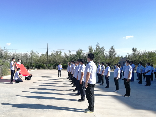 公司在職黨員和干部職工按照防疫要求佩戴口罩、間隔有序地在職工文體活動中心升旗廣場參加升旗儀式,隨后全體黨員在黨總支書記楊杰成同志的領(lǐng)誓下,面對黨旗重溫入黨誓詞,大家緊握右拳,莊嚴(yán)宣誓,追憶初心,反思使命,表達(dá)自己的決心與信念。