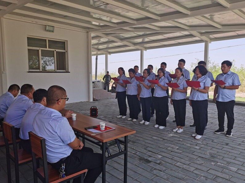 伴隨著激昂的國歌旋律,鮮艷的五星紅旗也隨風(fēng)飄揚(yáng),升旗儀式在莊嚴(yán)肅穆的氛圍中有序進(jìn)行,隨后公司黨支部書記帶領(lǐng)全體黨員面向黨旗,高舉右臂,莊嚴(yán)宣誓,一句句鏗鏘有力的入黨誓詞是大家不忘的初心,回音在耳邊縈繞,在心中激蕩。