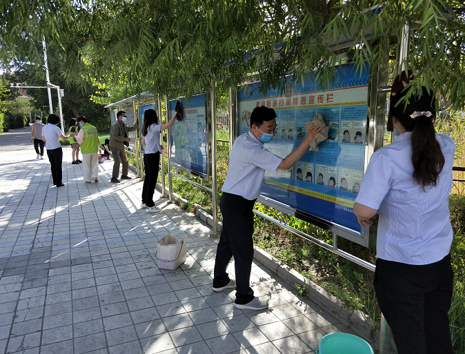 隨后,參加活動的黨員們拿著抹布、拎著水桶來到宣傳欄前,將宣傳欄里里外外徹底清洗打掃了一番,經(jīng)過大家的努力,宣傳欄、廣告牌變得煥然一新。