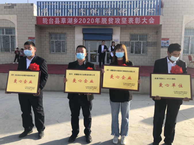 近日,新疆昌源水務(wù)集團(tuán)庫(kù)爾勒銀泉供水公司在輪臺(tái)縣草湖鄉(xiāng)2020年脫貧攻堅(jiān)表彰大會(huì)上榮獲“愛心企業(yè)”榮譽(yù)稱號(hào)。會(huì)上,輪臺(tái)縣可可橋村駐村工作隊(duì)第一書記張明東表示,脫貧攻堅(jiān)是時(shí)代賦予每一個(gè)扶貧工作者的時(shí)代任務(wù)和光榮使命,在脫貧攻堅(jiān)收官之年,感謝庫(kù)爾勒銀泉供水有限公司三年來對(duì)可可橋村的大力扶持和辛勤付出。