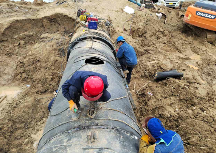 在摸清管道基本情況后,為快速恢復(fù)供水,準(zhǔn)東供水公司組織精強力量、協(xié)調(diào)搶修設(shè)備,搶修人員頂烈日戰(zhàn)黑夜加緊搶修,采用“車輪戰(zhàn)”方式接力作業(yè)。搶修隊員們的手臂、臉頰、前胸、后背滿是汗水,流淌而下的汗水浸濕了衣衫、蟄疼了眼睛。經(jīng)過5天5夜的連續(xù)奮戰(zhàn),在大家的共同努力下于8月14日恢復(fù)正常供水。為確保后續(xù)供水安全,準(zhǔn)東供水公司又組織檢修隊員對沿線井室管道進行檢查。